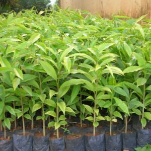 Sau khi gieo 5 – 6 tháng có thể đám cây con đi trồng. Trồng theo hố cách nhau 7 – 10cm, kích thước hố 40 x 40 x 50 cm. Mỗi hố bón lót 5 – 7 kg phân chuồng mục, trộng đều phân với đất rồi đặt cây, lèn gốc và tưới ẩm. Có thể dùng bèo tây phủ xung quanh gốc, vừa giữ được ẩm vừa hạn chế được cỏ dại trong thời kỳ đầu.