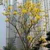 Cây ra hoa vào tháng 3 đến tháng 5, hoa có màu vàng rực, thành chùm giống hình chuông.